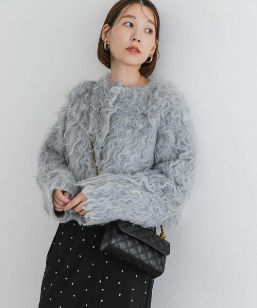 【エッジの効いたスタイリングを楽めるシャギーショートニット】 秋冬ムードを一気に高めてくれるシャギーショートニットが登場。フラットなシェル釦がアクセントとなり、カーディガンとしても前後2WAYで着用可能です。まるでシープドッグのような波打つ毛足感もこだわりポイント◎ボートネック×ショート丈で設定し、着膨れしがちなシャギーでもバランス良くお召し頂けます。デニムやサテンなどの異素材アイテムとの着こなしが、今季はお勧め。 【F by ROSSO(エフバイロッソ)】 「母・妻・私 しなやかに行き来する服」をブランドコンセプトに、様々なシーンを行き来する大人の女性に向けた、ユースフルなファッションを提案します。 【2024 Autumn/Winter】【24AW】 ※毛足の長い素材は、着用により毛乱れや、他のものに毛羽が付着することがあります。 ※毛乱れした場合は、衣類用ブラシでブラッシングして整えてください。 ※その他お取り扱いに関しましては、商品に付属のアテンションタグをご覧ください。 総重量 : 約410g ※商品画像は、光の当たり具合やパソコンなどの閲覧環境により、実際の色味と異なって見える場合がございます。予めご了承ください。 ※商品の色味の目安は、商品単体の画像をご参照ください。 ▼お気に入り登録のおすすめ▼ お気に入り登録商品は、マイページにて現在の価格情報や在庫状況の確認が可能です。 お買い物リストの管理に是非ご利用下さい。 素材感 透け感 : なし 伸縮性 : あり 裏地 : なし 光沢 : なし ポケット : なし FREE