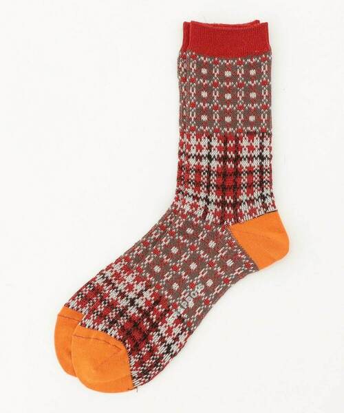 【素材】 キレイな発色と肌触りの良さ、適度な膨らみが特徴の糸を使ってチェック柄をアップリケしたようなイメージで編み上げたソックス。 【デザイン】 程良い丈のハイソックスにつま先とカカトでキレイな配色がチェック柄と相まってかわいいポイントをつくっています。 *こちらの商品はユニセックス商品です。 Fサイズ:24~27cm 【ブランド情報】 FRAPBOIS/フラボア 2001年にブランドスタート。 「大人げない大人の服」をコンセプトに、大人が着るリラックスしたデイリーウェアを提案するコレクションブランド。 レディースとメンズのアイテムをご用意しています。 ---------------------------------------------------------------------- 【お気に入り登録】がおすすめです。 ■商品のお気に入り登録 再入荷、残り1点、セールなどの通知を受け取ることができます。 →商品ページ ♡ をクリック ■ショップのお気に入り登録 新商品や再入荷、セール、クーポン配布、ショップニュースなど、いち早くショップの情報を受け取ることができます。 →「♡お気に入りショップに追加」 をクリック ----------------------------------------------------------------------