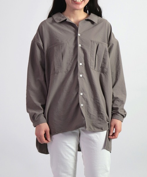 [ D.M.G. STANDARD ITEM ]トロンとした柔らかい、速乾性やUVカット効果のある素材つい触りたくなる肌触りの良いやわらかい生地。ふわっと広がり体型カバーも叶えるオープンカラーシャツ。大人の雰囲気満載な絶妙くすみカラー。……………………透け感:なし (白はややあり)厚さ:薄手ポケット : あり伸縮性:なし洗濯:洗濯可……………………ポリエステル100%<素材・デザイン>環境に配慮したリサイクルポリエステル糸を高密度に織り上げてコットンライクに仕立てた生地。とろみのある質感で柔らかく気持ちの良い素材です。速乾性やUVカット効果もあります。台襟のないオープンカラーで首元はすっきりと、肩はドロップショルダーで身幅にゆとりを持たせたオーバーサイズシルエットになっています。INでもOUTでもおしゃれにまとまるサイズ感です。少し後ろの丈が長く設定しているので、ふわりと腰回りをカバー。日除けにもなる、夏のお出かけの際にサッと羽織って頂きたい一着です。サイズ表記は2(Mサイズ)、3(Lサイズ)となります◇着用レビューH162 / 着用サイズ2(M)さらっとした着心地が気持ち良いオーバーシャツ。2サイズ展開ですがオーバーシャツというだけあってMサイズでも余裕をもって着用できました。よりメンズ感を意識して長さも欲しいとなればLサイズにしようかなという丈感。とろみがあるので大きいサイズにしても肩は気にならなさそう。ボタンを開けて羽織ともして使えるのはもちろん、オープンカラー風に着たり、全部閉めれば雰囲気が変わるので一枚で表情をかえやすいシャツです。[D.M.G / ディーエムジー] 厳しい品質管理のもと、児島・さぬき市の国産工場で縫製しています。児島の洗い工場で加工を施した製品は肌馴染みの良い生地感に仕上がり、はき込むほどに独特の風合いを生み、長く味わっていただける商品となります。 「デニム」・「ワーク」・「ミリタリー」といったカジュアル服の普遍的なキーワードをイメージソースに、ベーシックでありながら程良く時代と寄り添ったデイリーウェアーを提案します。お問い合わせ品番 : 16-0723X / 16-723X