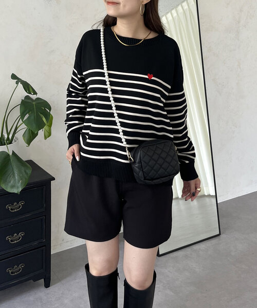 ワンポイントのハートがアクセントのボーダーニット●薄手のニットなので初秋から楽しめます●アウターも羽織りやすく冬も着用可能◎●パンツやデニム、ボトムを選ばず着まわせます●ボートネックで首周りのつまりもなくストレスフリーハート/ボーダー/着回し/秋ニット/きれいめカジュアル--------------------------------------------------------------生地の厚さ:やや薄い伸縮性:ややあり透け感:なし裏地:なし洗濯方法:ご自宅で手洗い可--------------------------------------------------------------※商品のお取り扱いに関しましては、商品に付属のアテンションカード、洗濯ネームをご覧ください。※撮影場所やお使いのモニター環境により若干お色味が異なる場合がございます。特にロケの撮影では明るく見える傾向にございます。 ※サイト上ではフリーサイズの表記ですが、商品タグにはMサイズと表記されている場合がございます。その場合、ワンサイズでのご用意となりますのでサイズミスなどではございません。詳しいサイズはサイズスペックをご確認いただきますようお願い致します。※サイト上でのカラー名とお届けした商品に記載されているカラー名が異なる場合がございますので予めご了承ください。<返品・キャンセルについて>・着用・洗濯後の返品は致しかねます。・商品到着後、着用前に商品を確認して頂きますようお願い致します
