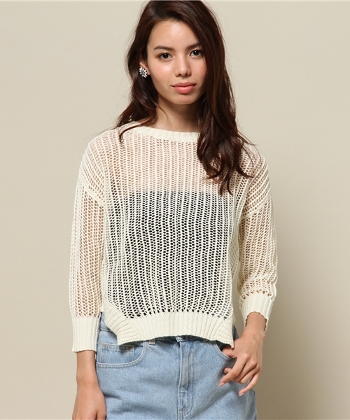 ざっくりと編まれたローゲージニットは、ボリューム感のあるゆったりとしたシルエット。表情のあるふわっとした生地感が心地よく、インナー使いで透け感を楽しみたいアイテムです。ダメージデニムやショートパンツと合わせて、女性らしいリラックススタイルを楽しんで。