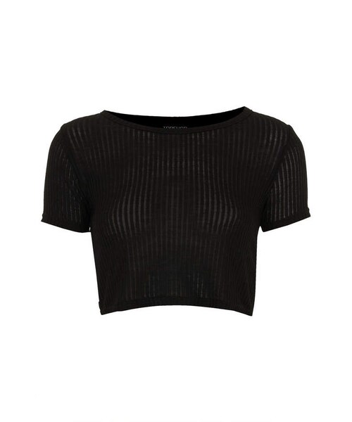 Short sleeve crop in ribbed fabric 65% Polyester, 35% Viscose. Machine washable. Shop rib crop tees in more colours here. Color: BLACK Item code: 04Y15FBLK SHIPPING We ship to all 50 states.