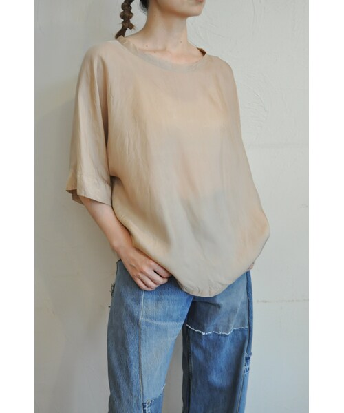 Tシャツ感覚で着れるプルオーバータイプのブラウス。 ゆったりとしたサイジングと肘が隠れる袖丈なので、真夏にも涼しく着れるアイテムです。 キュプラ素材でさらりとした肌触りが心地いい。 メンズにもおすすめです。