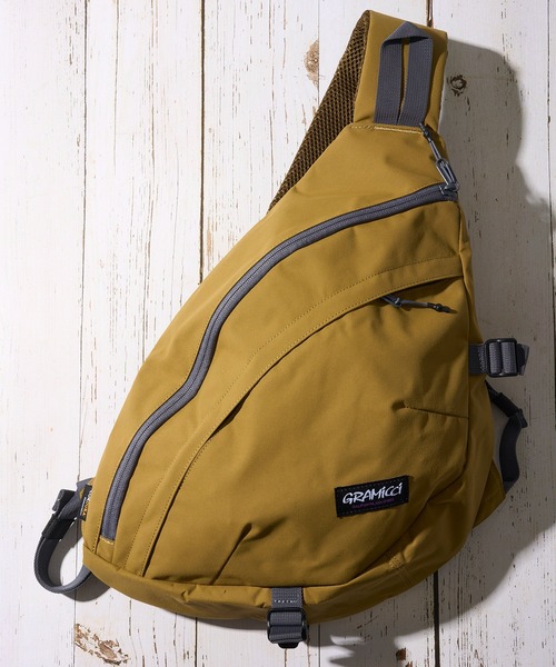 2024 autumn&winter ---GRAMICCIから新作スリングバッグの登場--- ■素材 通常のナイロンに比べて耐摩耗性に優れているコーデュラ生地を使用しています。 耐久性も優れたアウトドアブランドらしい丈夫な生地を使用しているので、長くご愛用いただけます。 ■デザイン スリングバッグ=ストラップが1本だけの斜め掛けバッグ。 リュックほど大きすぎず、ボディバッグほど小さくない中間サイズのバッグです。 収納力も高く、体に馴染む流線形のデザインがポイントです。 メンズ、レディース性別を問わずご使用頂けます。 ■サイズ W34.0㎝×H45.0㎝×D10.0㎝ ---GRAMICCI / グラミチ--- アメリカ・カリフォルニア州中部に位置するヨセミテ国立公園。ロッククライマーの聖地である、このヨセミテで生まれたブランド。 当時のクライミングウェアにはなかった、180度自然な開脚を可能にした「ガセットクロッチ」や片手で調整できる「ウェビングベルト」など画期的なディテールを開発した。 個人のライフスタイル、そしてファッションが多様化する中、タウンユースのブランドとして定着した『GRAMICCI』も様々なシーン・スタイリングを想定し、素材やシルエットなどで新しい世界観を打ち出し、ライフスタイルブランドとしての“イージー&カンファタブル”の追求、そして“ニュースタンダード”を提案している。