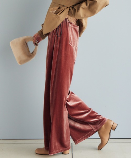 上品でしなやかなベロア素材のイージーパンツ トレンドのベロア生地を使用したワイドギャザーパンツ。落ち感も綺麗でドレープ性もあり、シルエットを綺麗に魅せてくれます。 さりげないサイドの切替もポイントです。 上品な光沢感があるので、スタイリングにニュアンスが出ます。 ウエストゴムになっているので、イージーでありながら、キレイめにも使えます。 【スタイリング】 同色のトップスを合わせたワントーンコーデはこなれた印象のシンプルスタイル。 落ち感があり、ワイド過ぎないシルエットなので トップスをインしてもアウトでも洒落感のあるスタイリングになります。 ストレスフリーで動きやすいので旅行コーデにもおすすめです。 【素材】 柔らかく滑らかな肌触りのベロア生地。 お買い物をお得にもっと楽しく!上手な活用方法>>> ▼商品のお気に入り登録▼ 完売カラーの再入荷通知や、ラスト1点の通知、プライスダウンしたセール通知も受け取ることができます。 ▼ブランドのお気に入り登録▼ 新作や再入荷等、いち早くブランドのお得な情報を受け取ることができます。 【ご注意】 ※屋外の光や照明の当たり具合で、実際の商品の色味とカラー別画像の色味に若干の違いが発生する場合がございます。 詳細画像と併せてご確認の上、ご注文いただきますようお願い致します。 ※サンプルにて撮影をしておりますので、 実際の商品とは色味・仕様や加工・サイズ等が若干異なる場合がございます。 予めご了承くださいませ。