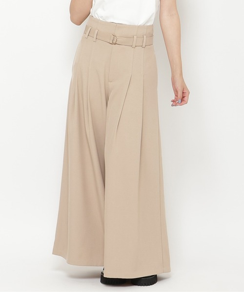 スカート見えするようなボリューム感のあるシルエットがポイントタックを入れて、生地を贅沢に使用しました。ちょっぴりモードな大人見えパンツです。ウエストの後ろはゴム仕様になっていて、トップスINもきれいに着こなせます。【styling】シンプルなので、デザイントップスとの相性◎フェミニンからモードまで幅広いスタイリングが楽しめます。同素材のケープ風ショートジャケット(商品番号:20022426500031)と合わせればセットアップに。---------------------------透け感:なし裏地:なし伸縮性:なし生地の厚さ:ふつう---------------------------M:(02):着丈100cm ウエスト69cm ヒップ98cm 股上36.5cm 股下46.5cmS:(01):着丈96cm ウエスト66cm ヒップ94cm 股上35.5cm 股下45cm