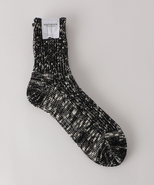 ふっくらとした編地が魅力のスラブソックス。 ■デザイン ムラのある個々に違った編地が特徴の温かみのあるデザイン。 程よいリブの長さと圧迫感のない履き心地で、軽やかな着用感を提供します。 ■素材 ソフトな肌あたりのコットン・ポリエステル・ポリウレタンのブレンド素材を使用しております。 ■コーディネート シックなブラック、鮮やかなレッド、優しい表情のイエローの3色展開で、秋冬シーズンを足元から彩ります。 【注意事項】 ※商品を使用前に、タグ等に記載されている「取り扱い上の注意書き」、「洗濯表示」を必ずご確認ください。 ※商品画像は、光の当たり具合やパソコンなどの閲覧環境により、実際の色味と異なって見える場合がございます。あらかじめご了承ください。 ※商品の色味の目安は、商品単体の画像をご参照ください。 店舗へお問い合わせの際は、全国のBEAUTY&YOUTH各店舗まで下記の品名/品番をお申し付けください。 品名:SC BIG SLUB SOCKS 品番:14356991951