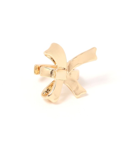リボンモチーフのイヤーカフ。シンプルなデザインで、メタル素材なので甘くなりすぎず、カジュアルにもお使いいただけます。