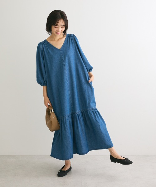 ヴィンテージ感のあるデニム素材で仕立てたデザインワンピース。裾をギャザーで切り替えた程よく広がるフレアシルエットながら、センターラインとVネックの襟ぐりですっきりと着用いただけます。ゆったりとした身幅と柔らかさのある素材でコンフォートな着心地なのも嬉しいポイント。アイテム次第でカジュアルにもファミニンにも合わせられるおすすめの一枚です。透け感[なし]生地の厚さ[普通]光沢感[なし]伸縮性[なし]裏地[なし]ポケット[なし]※モデル着用画像は、光の当たり具合で色味が違って見える場合がございます。※お使いのモニター環境によって商品の色味が違って見える場合がございます。●SUGAR SPOON●(シュガースプーン)カジュアルをベースに固定概念にとらわれず、自由にオシャレを楽しみたい女性に向けた新しいリアルクローズを提案するブランド。 さりげなくトレンドを取り入れ、スタイリングしやすいデイリーウェア。 毎日を一緒に楽しく過ごせる、そんな服を展開していきます。▼ 商品のお気に入り登録がおすすめです ▼商品ページ内のハートマークをクリック。完売時の再入荷や、最後の1点の通知、コーディネート画像がアップされたとき、お得なお値下げの際の通知を受ける事ができます。【お知らせ】ページでも通知が確認できます。