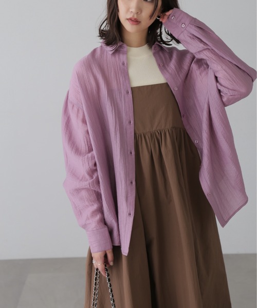〔fabric&design〕ワッシャー加工を施したシアー素材のビッグシャツ。 オーバーサイズでさらっと羽織っていただけるサイジング。 ワッシャー加工としわになりにくい素材感でまだ暑い時期に鞄に忍ばせて持ち歩きしやすいです。 〔stylinig〕 前のボタンを閉じてボトムにタックインしてキレイ目に着こなしても。 羽織りとしてもサマになりマルチに活躍します。 ■透け感:ややあり ■生地の厚さ:普通 ■裏地:なし ■伸縮性:なし ■光沢:ややあり ■シルエット:ビッグ --------------------------------------------------- ◆商品のお気に入り登録◆ お気に入りアイテムの値下げ・再入荷・在庫1点などの通知を受け取ることができます。 ◆ブランドのお気に入り登録◆ 新商品や再入荷、セール、クーポン配布などお得な情報を受け取ることができます。 --------------------------------------------------- ※ご注文いただいた予約商品のお届け時期の確認は、注文履歴ページより行えます。