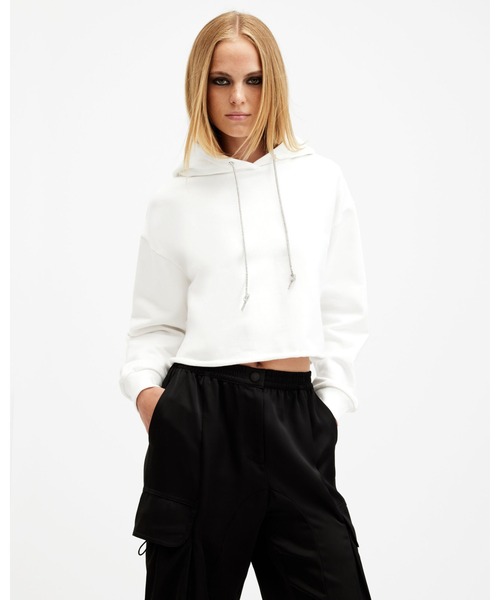リラックスもドレスアップも対応するPippa Sparkle フーディーはオーガニックコットンを使用したレギュラーフィット。ディアマンテディテールドローコードがさりげなくスパークル。チルタイムにジョガーパンツと、またはお出かけ時はドレスと合わせて着こなそう。▼特徴、ポイントサイズ通りのレギュラーフィットプルオーバーフード付き長袖リブトリム装飾付きドローコードレギュラー フィットモデル寸法: 身長: 5'9"/175cm, ウエスト: 23.5", ヒップ: 35.5", バスト: 31.5"モデルはMサイズを着用しています。洗濯表示:裏返し洗い従来の栽培方法と比較して、オーガニックコットンは殺虫剤不使用、水の灌漑技術の改善、生物多様性の保全など栽培における利点があります。■レギュラー: サイズ通りで、ややゆったりとした着心地。肩の縫い目が肩にぴったりと合い、快適さと動きやすさを提供します。ALLSAINTS(オールセインツ)について1994年創業の英国発プレミアムコンテンポラリーブランド。イーストロンドンに本社を構え、メンズ・ウィメンズウェアをはじめとする商品のデザインからストアデザインまで、すべてを自社でコントロールしています。アイコンのバイカージャケットを筆頭に、バッグやシューズなどのレザーグッズ、独特なシルエットのドレス、素材にこだわったニットやシャツ、デニムなどの豊富なアイテムが揃います。現在、世界26か国に250店舗以上を展開中。