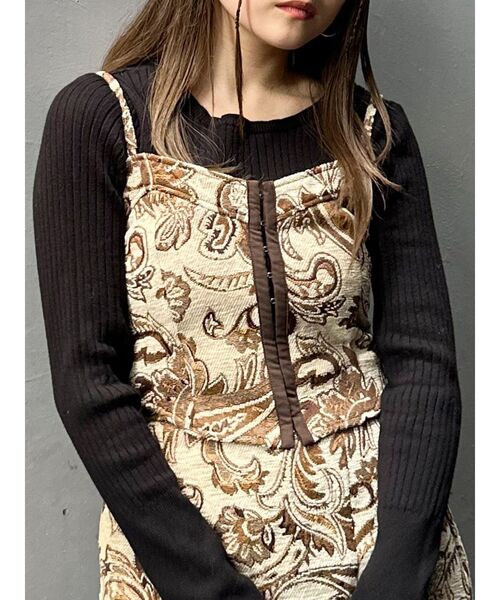 【2024 WINTER COLLECTION】コーデがワンランク上がる高見えアイテムボトムとセットでも着用可!■アイテムMURUAで大人気のビスチェ。しっかりした厚みと起毛のある素材で、冬の季節にピッタリの高級感のあるアイテムです。フロントのホックデザインも旬なPOINT。ウエストラインをカーブに削っているので、スタイルアップも叶います。後ろはゴムになっており着心地も◎肩ひもも後のボタンで長さ調節可能です。▼同生地のボトムスはこちらを検索↓▼012450805201 ジャガードミニスカート--------------------------------------------伸縮性:なし 生地の厚さ:普通透け感:なし サイズ感:普通--------------------------------------------【知って得する便利機能◎ 】■商品のお気に入り登録再入荷時、ラスト1点の時にお知らせします。■ブランドのお気に入り登録新商品やお得な情報など、いち早くお得な情報をゲット!ぜひご活用ください。※着用画像はフラッシュの加減で実際の製品と色味等が異なる場合がございますので、生地のズームアップ画像をご確認ください。※ご利用の端末画面の設定により実際の商品と色味が異なる場合がございます。