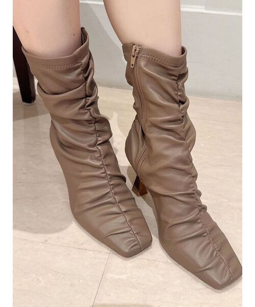 ギャザーがポイントのショートブーツ▽デザイン▽内側にファスナーが付いている為、着脱しやすいのも嬉しいポイント♪レザーが柔らかいため足に馴染みやすく、しっかりとしたヒール底で安定感のある履き心地です。足首にフィットする筒周りが足元を華奢に見せてくれます。いつものコーデをワンランクUPしてくれる1足です。▽カラー▽黒・ベージュのベーシックカラーでご用意。