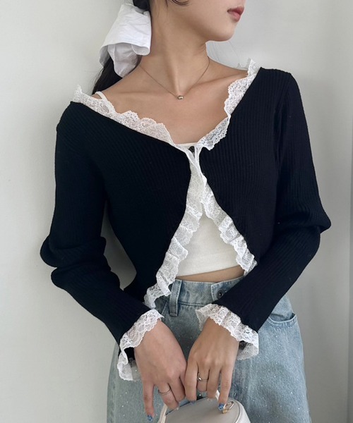 ~NICECLAUP 2024 Autumn Collection~ ショート丈でこなれ感があり、レースが華やかさをプラスしてくれるボレロカーディガン スタイルアップ効果もあるコンパクトな丈感で、 ワンピースやハイウエストのボトムスともバランスよくコーディネートができます◎ ボレロとしてはもちろん、クロップド丈のトップスとしても着られる マルチなアイテムです。 ■オススメスタイリング キャミワンピースの上に羽織るだけでお洒落上級者コーデに◎ トップスとして着るときは前のボタンを閉じ、中にキャミソールを合わせるのがオススメ。 ハイウエストのボトムスとの相性が抜群です。 ------------- 裏地:なし 伸縮性:あり 生地の厚さ:薄い 生地の重さ:軽い 洗濯:手洗い ------------- 【ニットアイテムのお取り扱いのご注意】 ※ニットアイテムは、素材の特性上以下の点にご注意下さい。 ●この製品は素材の特性上、着用やクリーニングにより、毛羽立ちや毛玉が発生することがあります。 1、1日着用した際は2、3日休ませるなどしてご使用ください。 2、毛玉が出来てしまった場合は、毛玉取り器、又はハサミで丁寧にカットして取り除いてください。 ●この製品はデザイン性、風合いを重視し編みたてたニット製品です。 着用により若干の伸びが生じますのでご了承お願いします。 又、保存時のハンガーのご使用は避け下さい。 ※サンプルでの撮影のため、実際のものと仕様や色が異なる場合があります。 ※室内、室外での撮影のため実際より明るく映っていたり、暗く映っていたりする場合がございます。 ※品質表示を必ずご確認下さい。 【商品のお気に入り登録】 完売カラーの再入荷や、ラスト1点のお知らせ、セールの通知を受け取ることができます。 【ブランドのお気に入り登録】 新作入荷や再入荷情報など、ブランドの情報をいち早くお届けします。 ぜひご登録ください♪
