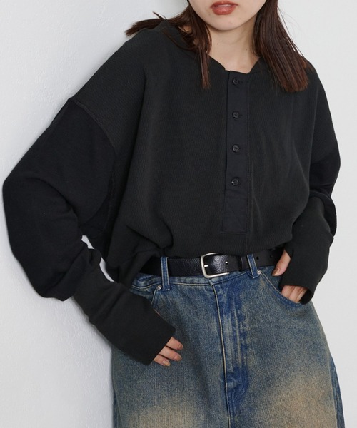 古着のような風合いが魅力。 存在感のあるデザインが他にはない、こだわりのリメイクシリーズ。 首元のスキッパーボタンが魅力のワッフルTee。 贅沢にあしらった袖のたっぷり感がコーデのアクセントに♪ ■デザイン シンプルながらこだわりポイントたくさんのワッフルTEE! 首元のボタンは開けられるので開けてスキッパーにしても◎ 背中部分にはタックが入っていて、後ろもぬかりなくかわいい♡ 長め袖リブ+指ぬきで袖部分で女性らしさを演出。 クロップド丈なのでスタイルアップ間違いなしのアイテムです! ■スタイリング デイリー使いしやすいベーシックカラーなので、幅広くスタイリングをお楽しみいただけます。 デニムパンツを合わせた定番スタイルはもちろん、ラインパンツでスポーティーにあわせても◎ ワンピースやスカートを合わせた大人カジュアルスタイルもおすすめです。 ■お手入れ方法 洗濯:液温は40 ℃を限度とし、洗濯機で弱い処理が出来る アイロン:底面温度110 ℃を限度としてスチームなしでアイロン仕上げができる タンブル乾燥:タンブル乾燥禁止 ・・・・・・・・・・・・・・・・・・・・・・ 透け感:なし 裏地:なし 伸縮性:あり 光沢感:なし 生地の厚さ:普通 ・・・・・・・・・・・・・・・・・・・・・・ ▼気になる商品をお気に入り登録 ハートをクリックして《お気に入り登録》がオススメです! ※画像の商品はサンプルを使用しております。実際の商品と若干の仕様が変更になる場合がございますので、予めご了承の上ご注文くださいますようお願いいたします。 ※屋外の光や照明の当たり具合で、実際の商品の色味とカラー別画像の色味に若干の違いが発生する場合がございます。詳細画像と併せてご確認の上、ご注文いただきますようお願い致します。 ※独自のタイムセールなどの施策により、実店舗と価格差が発生する場合がございます。 ※実際の店舗在庫につきましては、各店舗に直接お問い合わせください。
