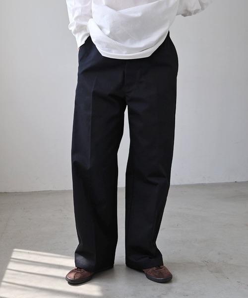 ANMEオリジナルTCツイル素材から 新作《センタープレス・ワイド・ストレートパンツ》が入荷しました。 程よい生地の厚さとハリのある10ozの素材を採用。 コットン混のさらりとした生地感が シーズンを通して快適に着用できます。 表面にナチュラルな光沢があり、 カジュアル過ぎないのもポイントです。 使うほど馴染んでいく、経年変化を楽しめる素材です。 やや腰で履く、ゆったりとしたワイドストレートで センタープレス入り。 便利なサイドポケットとバックポケット付き。 更にワークディティールのセルフォンポケット付き。 セルフォンポケット口には「ANME」別注ピスネーム付き。 お好みで裾をロールアップしていただくのもオススメです。 ご家族、カップルで兼用いただけるサイジングになっております。 [同素材の展開アイテム]※セットアップで着用可能 ・TCツイルスウィングトップジャケット(商品番号:2600042) ※裏地:なし ※撮影時のライティング、ご覧になっているモニター・PC環境により 実際の商品と色味が異なって見える場合がございます。 ご了承の上お買い求め下さい。 素材: 【本体】 ポリエステル65% 綿35% 【袋布】 ポリエステル80% 綿20% ≪備考≫ 伸縮性:なし 透け感:なし 生地の厚さ:やや厚手 肌ざわり:さらっとしている その他:ツイル素材 生産地:中国 手洗い:可 ドライクリーニング:可 ウェットクリーニング:可
