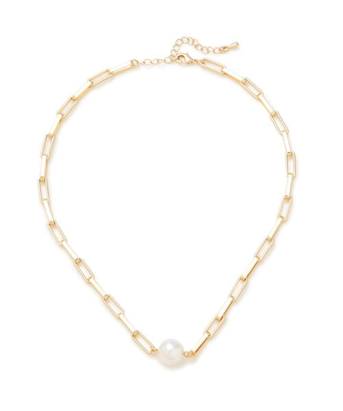 スクエアチェーンにワントップのパール調がアクセントになったネックレス。シンプルなコーディネートにも、レディライクな着こなしにも合わせていただけます。※モデルの着用画像の場合、光の当たり具合により、実際の色味と異なって見えることがございます。色味は、商品単体の画像をご参照ください。
