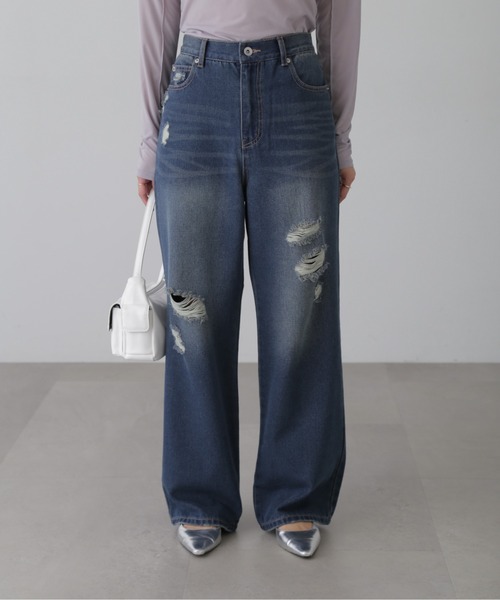 (fabric&desing) ヴィンテージライクな加工感が目を引くクラッシュデニムです。 擦りやオーバーダイ、ダメージのバランスなど加工感に拘り雰囲気のある仕上がりに。バランスの取りやすいワイドストレートシルエットです。 (styling) ベーシックなトップスは勿論、スイートライクなトップスなど甘辛ミックスなコーデがおススメです。 レースラップスカートレイヤードにも ■透け感:なし(穴のみややあり) ■生地の厚さ:普通 ■裏地:なし ■伸縮性:なし ■光沢:なし ■シルエット:スタンダード --------------------------------------------------- ◆商品のお気に入り登録◆ お気に入りアイテムの値下げ・再入荷・在庫1点などの通知を受け取ることができます。 ◆ブランドのお気に入り登録◆ 新商品や再入荷、セール、クーポン配布などお得な情報を受け取ることができます。 ---------------------------------------------------