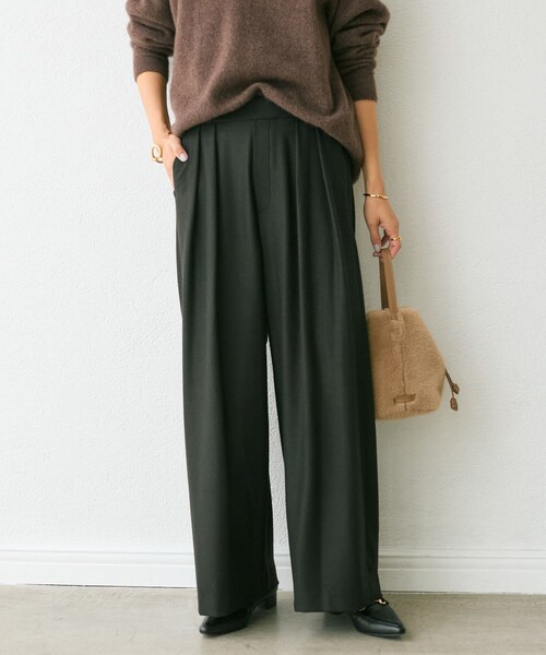 人気アイテムに秋冬素材が登場!●デザイン両面起毛の素材で作られた、タックワイドスラックス(RDZ1041102A0006)のAWバージョン。滑らかで、程よい落ち感。ストレッチのある、保温性、防シワ性の優れた素材を使用し、ノンストレスな履き心地でキレイ見えするパンツになっております。ファスナーがなく脱ぎ着もラクチン。タック入りで気になる腿周りをカバーする嬉しい効果も。何と合わせてもこなれた印象でおしゃれ見えする、オンオフ問わず使える万能パンツです。●おすすめスタイリングアイテムラグランPコート(RDZ1042308A0005)ヘアリーウール畦Vネックニット(RDZ10A2205A0006)ビッグデニムシャツ(RDZ5032404A0001)●素材ポリエステル 50% レーヨン 34% アクリル 13% ポリウレタン 3%・起毛感のある素材洗濯方法:手洗い可透け感:なし裏地:なし伸縮性:あり生地の厚さ:ふつう光沢:なしファスナー:なしポケット:あり--------------------------------------------------------------------------------【注意点】※画像の商品は光の照射や角度、お使いのモニター環境により、 実物と色味が異なる場合がございます。※入荷状況により、お届け予定が前後する場合があります。※お客様への発送が店頭販売より遅れる場合もあります。※追加生産商品は、一部の店舗、通販で販売中の場合がございます。 予めご了承下さい。--------------------------------------------------------------------------------【お買い物をもっと便利に楽しく♪】『♡』をクリックでお気に入り登録✓「商品のお気に入り登録」で・・・ラスト1点や再入荷の通知が届きます。登録して頂いた商品だけが対象となる、あなただけのタイムセールが開催されることも!✓「ブランドのお気に入り登録」で・・・新商品や再入荷など、いち早くブランドのお得な情報を受け取ることができますので、ご登録をおすすめします!--------------------------------------------------------------------------------