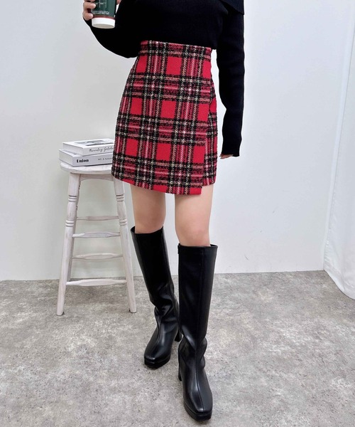 巻きスカート風のラップデザインがガーリーなチェック柄のスカパン。 コンパクトなシルエットでスタイルアップも狙えます。 季節感のある生地にラメを織り込んだチェック柄が華やかな雰囲気。 バックウエストはゴムになっているのではき心地も快適です。 サイドジップで脱ぎ着も楽チン。 パンツ型の裏地がドッキングしているので1枚でも安心です。 ・バックウエストゴム ・サイドファスナーあり 【以下アカ参考。カラーにより多少の誤差あり】 ・透け感:透けない ・伸縮性:なし(表地) ・生地の厚さ:厚め ・裏地:あり