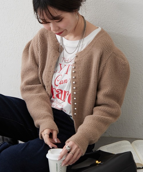 ーーーーーーーーーーーーーーーーーーーーーーーーーーーーーー 【OTONA line.】series RMAFが提案する、 着飾りすぎずリラックスムードもありながら 洗練された雰囲気とトレンド感を詰め込んだオトナアイテム。 ーーーーーーーーーーーーーーーーーーーーーーーーーーーーーー ■ Design ・細かいシルバー釦が目を惹くふわもちカーディガン。 ・フェザーの起毛感が秋冬ムードを高めてくれます。 ・裾リブを長めにしたことでトレンドライクな雰囲気に ■Styling ・羽織りでもプルオーバーとしても着用可能。 ・短丈シルエットなのでボリュームあるボトムスとも相性抜群です *********************** 洗濯方法:手洗い 裏地:なし 透け感:なし 伸縮性:あり *********************** -INFORMATION- ◆商品のお気に入り登録 ・完売していても再入荷時に再入荷通知を受け取ることができますので、是非ご登録ください♪ ◆ブランドのお気に入り登録 ・新商品や再入荷などの情報を受け取ることができますので、是非ご登録ください♪ ※屋外の光や照明の当たり具合で、実際の商品の色味とカラー別画像の色味に違いが発生する場合がございます。 商品の色味はスタジオ撮影の詳細画像にてご確認ください。 ※ご注文いただいた予約商品のお届け時期の確認は、注文履歴ページより行えます。 ◆返品・キャンセルについて ・着用・洗濯後の返品・ご交換は致しかねます。 ・商品到着後、着用前に商品を確認して頂きますようお願い致します。