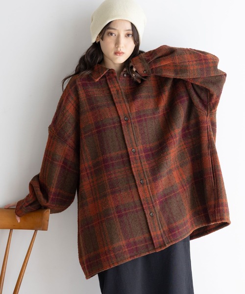 毎年大人気のアイテムが今年も登場! 大ぶりチェックの映えるシャツアウター! ■おすすめスタイリング ☆ヴィンテージライクコーデには・・・ コットンフリルスカートや加工デニムで合わせれば古着ライクなスタイルに! キャップ×スニーカーなど、カジュアルな小物でまとめるのが◎ ☆トレンドスタイルには・・・ ハーフパンツ×サイドゴアブーツで合わせてクールな雰囲気に! 一枚での着こなしはもちろん、中にビスチェをレイヤードしシャツを羽織ったワンランク上のスタイルも◎ ■ポイント 羽織るだけでこなれ感漂う、オーバーサイズのブークレチェックシャツ。 ヴィンテージ感のあるブークレ素材でぽこぽことした表面感が可愛く、厚みのある素材感で暖かさも◎ また、裏地は起毛仕様にすることで、柔らかい着心地にもこだわりました! 身幅・肩幅にゆとりを持たせた、トレンドのビッグシルエットで、ユニセックスでの着用もおすすめ! 袖にタックを入れることでボリューム感も◎ サイドにスラッシュポケット付きなのも嬉しいポイントです! トレンド感のあるドロップショルダー仕様で、今年らしい印象に。 シャツアウターとしても着られるので、軽アウター感覚でも着用可能です! ■素材 厚みのある素材を使用し、寒い季節でも暖かく着用可能。 今年らしい大ぶりのチェック柄で、一枚で着映えるアイテムです。