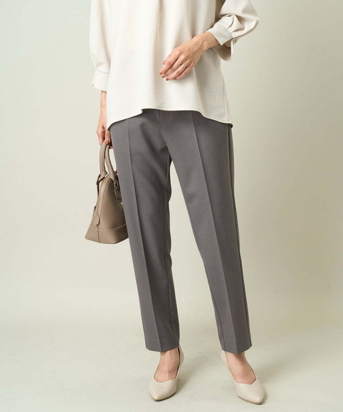 ◆多機能素材が嬉しい通勤服◆ 【デザイン】 ・ジャケットと相性の良いテーパードシルエット ・スタイルがよく見えるとご好評いただいている定番アイテム ・片方の後ろポケットはボタン付きでワンポイントに ・ベルト下までのセンタープレスで脚長効果も◎ ・ウエストの1.5cm動く前ホックで座ったときの窮屈さを軽減 【素材】 ・ご家庭の洗濯機で洗えて、アイロンいらずのイージーケア ・毛玉になりにくい素材を使用 ・動きやすいストレッチ素材 ・UVカット90%で日差しにも◎ 【コーディネート】 同素材ジャケットとのセットアップ着用で きれいめお仕事スタイルが完成。 同素材のジレとのスタイリングが今年らしくておすすめです。 通勤からおでかけまで汎用性の高いアイテムです。 【同素材シリーズ】 ノーカラージャケット:KBDJW011199 キーネックジャケット:KBDJW02119 テーラードジャケット:KBDJW03119 ロングジレ/ワンピース:KBEJW01109 ペプラムジレ:KBJJW01089 テーパードパンツ:KBLJW01064 クロップド丈ワイドパンツ:KBLJW02064 ワイドストレートパンツ:KBLJW03064 セットアップでお探しの際は上記品番をご確認ください。 ------------------- 透け感:なし 裏地:なし 伸縮性:あり 光沢感:なし 生地の厚さ:普通 -------------------- -------------------- ≪お気に入り登録機能の使い方≫ ■商品のお気に入り登録(ハートマークをクリック) 再入荷通知や値下げ等、お得なご案内を受けることができます。 -------------------- ※商品画像は、光の当たり具合やパソコンなどの閲覧環境により 実際の色味と異なって見える場合がございます。 商品の色味の目安は商品単体の画像をご参照ください。 ※34(XSサイズ)・42(XLサイズ)はWEB・一部限定店舗での販売です。