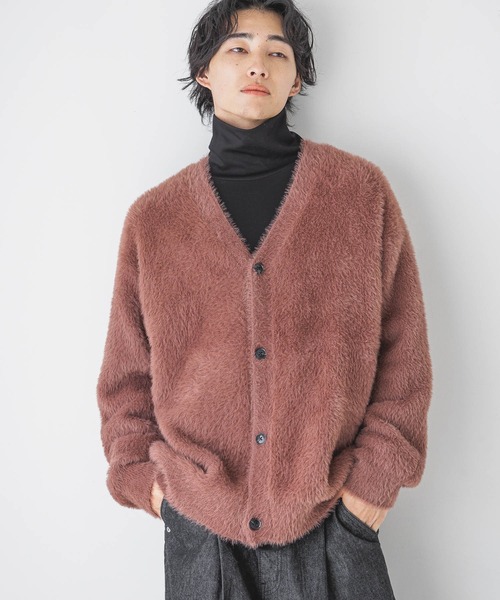 ■素材■ナイロンのラッセルモール糸をダブルジャガードで編むことで、程良い重厚感とフェザーヤーン特有の光沢感があります。暖かさだけでなく、着心地の良い素材です。■デザイン■素材の風合いを活かしたカーディガンです。秋の軽羽織としてはもちろん、アウターとレイヤードすれば、素材のコントラストを楽しめる一枚です。