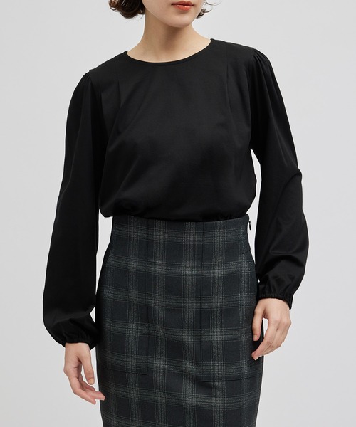 【素材】高級綿である超長綿のコンパクトヤーンを使用しているため、毛羽が少なくシルクのような光沢があります。更に特別な加工を施すことで、極限まで毛羽を落とし洗濯耐久性に優れたイージーケア素材かつ、触れた瞬間にひやりと感じる接触冷感性も兼ね備えています。【デザイン・シルエット】ショルダー部分にタックを入れて動きをだし、肩山部分にギャザーを入れて程よいボリューム感を出したディテールがポイントです。キレイめな素材感で一見ブラウスライクな、上品なカットソーです。【カラー】秋らしいシックなバーガンディカラーがポイント。キレイめなベージュとブラックの着回しのきくベーシックカラーの3カラー展開。【おすすめのスタイリング】ネック周りはスッキリと仕上げているので、ジャケットのインナーにおすすめで、ジャケットを脱いだ時にも、上品なブラウスライク1枚着カットソーになっています。スッキリとしたタイトシルエットのスカートや落ち感のあるワイドパンツにポインテッドのシューズを合わせると素敵です。----------------------------透け感:なし裏地:なし伸縮性:ややあり光沢感:なし生地の厚さ:薄手ポケット:なし開き方:かぶり(後ろ首部分にボタンあり)----------------------------【モデル情報】モデル身長:170cm 着用サイズ:F※画像の商品はサンプルです。実際の商品と仕様、加工、サイズが異なる場合がございます。※撮影場所やライティング、お使いのモニター環境によって色の見え方が異なる場合がございます。※商品のカラーは画像の色味をご参照ください。動画は仕様説明のため、色味が実物と異なる場合がございます。