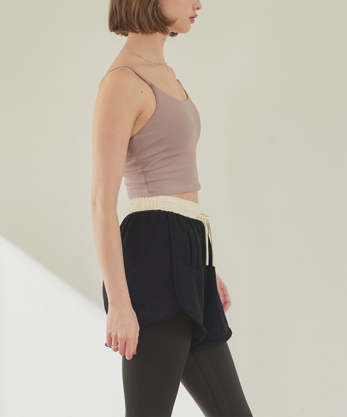 バイカラーデザインのウエストベルトがポイントのショートパンツタイプのアクティブウェア。 伸縮性が高く柔らかく肌触りの良い素材なので、着心地抜群な上に動きやすい◎ ウエストゴム仕様+紐付きなので、フィット感のある着心地を叶えます。 ヨガやピラティス、ジムウェアとしてスタイリングでき、レジャーシーンなどにも幅広く使える、オールシーズン活躍できるアイテムです。 ■サイズ表記■ 【S】ウエスト:60、ヒップ:108、股上:26、股下:10、裾幅:34 【M】ウエスト:63、ヒップ:112、股上:27、股下:11、裾幅:35 【L】ウエスト:66、ヒップ:116、股上:28、股下:11、裾幅:36 ------------------------------------------ 【伸縮性】ウエスト部分にあり 【透け感】なし 着水は非推奨です。 ------------------------------------------ ◆色移り等を防ぐため着用前に単独で洗うことをお勧めします。 ◆商品により、色落ち・色移りがある場合がございます。漂白剤は使用しないでください。 ◆当店のサイズ表記について 弊店で表記しているサイズはすべて弊店スタッフが採寸した実寸値になっております。 お手持ちのアイテムとサイズを比較されますと、大きさのイメージがつかみやすいかと思いますので、 こちらの数値を参考に、ぜひ一度ご購入前にお確かめください。 ※製造工程の関係上、各採寸箇所実寸(平置き)より【約-3cm~+3cm】程度は誤差の許容範囲とさせて頂いております。