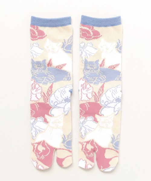 愛らしい猫と花々を描いたモダンなデザイン。足元を華やかに彩ります。 【靴下の一大産地 奈良県で作られた足袋型くつ下】 足にしっかり馴染んで履きやすい。足袋特有の履き心地。古くて新しい奈良の靴下。 編み上がった靴下は筒状になっていて足先が縫われておらず、一足づつ手作業で指部分を縫っています。柄は機械で編めても、ここは職人の手でしかできない部分。工業的に見える製品でも人の手で作られていることを知り、あらためて温かさを感じます。 --- JAPAN MADE --- ◆カヤ◆ 古くから伝わる日本の伝統と新しい文化の融合。 「新しいカタチの日本」に出会える倭物ブランド【カヤ】 「文明開化」をテーマに、倭モダンで色彩あふれる刺激的な和雑貨を提案していきます。 ※こちらの商品は1点1点職人による手作りとなります。その為、形や色合いなど若干異なる場合がございます。あらかじめご了承ください。 Amina Collection Co.,LTD.