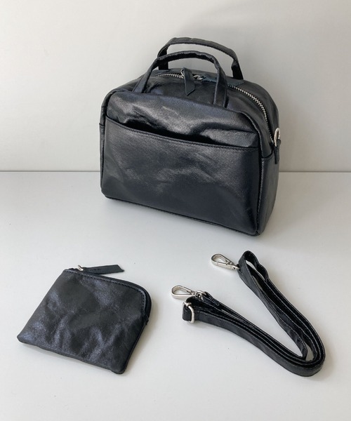 キャンバスにメタリックなコーティングがされている生地を使用を使用しており見た目の重厚感に反しての軽さに驚き!普段使いは勿論、オケージョン使いにも◎ショルダーストラップつきの2WAY仕様で、小さな小物も迷子にならないポーチつき両開き開閉も使いやすいポイントです。★FOILキャンバスはシワ加工されており、シワの入り具合は個体差があります。★同色のポーチつきPOUCH SIZE : 115*90mm内ポケット1外ポケット1重さ 260g