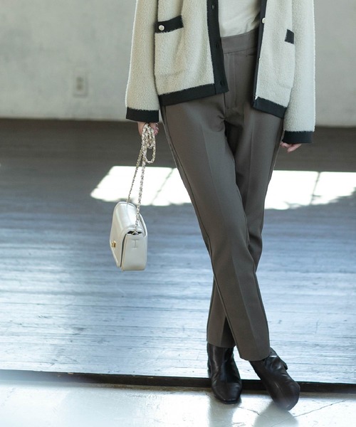 「暖かく、快適に。」 蓄熱素材「NEO THERMO/ネオサーモ(R)」を使用した、裏起毛のストレッチツイルシリーズ。 こだわりの美しいシルエットで、美尻・美脚効果がありながら、 高いストレッチ性があり、非常に穿き心地の良い美脚パンツです。 【デザイン】 ・裾にかけてキレイな細身のシルエットを描く、美脚スティックパンツです。 ・腰回りがすっきりと見える、ノータックデザイン。 ・センタープレス入りで、脚を真っすぐに、美しく見せてくれます。 ・ストレッチ性の高い生地を使用しているので、ヒップにも美しくフィット。 ・後ろに飾りポケットを付けることでヒップアップ効果を出しました。 ・ジャストレングスの設定でヒールからスニーカーまで足元を選ばず、着回し力の高い一本です。 ※ポケット数:横×2 後ろ(ダミー)×2 【素材】 ・蓄熱機能素材「NEO THERMO」(ネオサーモ)のストレッチツイル素材を使用。 ・高いストレッチ性のある素材で、美脚・美尻効果がありながら快適な穿き心地です。 ・ほどよく厚みのある素材なので身体のラインを拾いにくい。 ・クリーンな素材感で、オンシーンにもオフシーンにも活躍。 ・適度に厚みのある裏起毛素材で、蓄熱効果があり、これからの時期に最適です。 ・マシンウォッシャブルでご自宅でのお洗濯も可能 ※裏地なし ※オフホワイト(003)はやや透け感があるため、インナーの着用をおすすめします。 ※同素材のストレートワイドパンツ(637-69012)もご用意がございます。 ※照明の関係により、実際よりも色味が違って見える場合があります。また、パソコン・スマートフォンなどの環境により、若干製品と画像のカラーが異なる場合もございます。 モデル情報:身長165cm B72 W57 H84 着用サイズ:38(M) 店舗へのお問い合わせ商品番号:637-69019 ●製品寸法: 01(トールS):総丈97cm W67cm H90cm 股下70cm 渡り幅28cm 裾幅15cm 02(トールM):総丈98cm W70cm H93cm 股下71cm 渡り幅29cm 裾幅16cm 03(トールL):総丈101cm W73cm H96cm 股下73cm 渡り幅30cm 裾幅17cm 34(SS):総丈93cm W64cm H87cm 股下67cm 渡り幅27cm 裾幅15cm 36(S):総丈94cm W67cm H90cm 股下67cm 渡り幅28cm 裾幅15cm 38(M):総丈95cm W70cm H93cm 股下68cm 渡り幅29cm 裾幅16cm 40(L):総丈98cm W73cm H96cm 股下70cm 渡り幅30cm 裾幅17cm 42(LL):総丈98cm W76cm H99cm 股下70cm 渡り幅31cm 裾幅18cm 備考: