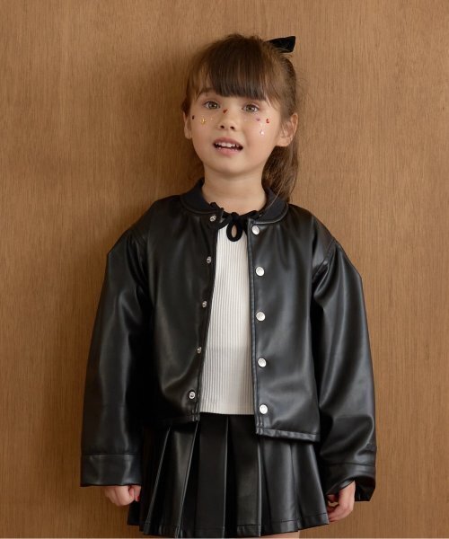 コーデを引き締める合皮シリーズのブルゾンです。 少しゆったり身頃とコンパクトな丈感がトレンドをしっかり押さえます。 ハート柄のスナップボタンでガーリー要素をプラス。 なめらかな触り心地でストレッチの効いたフェイクレザーを採用。 同素材のスカート(3044105)やジャンパースカート(3044320)と合わせてセットアップも可能です。 ※モデル着用写真より商品写真が最も実物に近い色味です。 ※掲載画像の商品の色味は、光の照射や角度により実物と色味が異なる場合がございます。 また表示のサイズ感と実物は若干異なる場合もございますので、予めご了承ください。 【透け感】透けない 【生地の厚さ】普通 【伸縮性】あり 【裏地】あり 【ポケット】あり