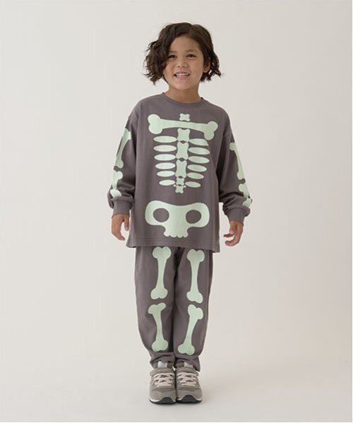 ビールームのハロウィンシリーズにとっても個性的なほねほねプリントのセットアップが登場しました!蓄光プリントで暗闇で怪しげに光ります。注目の的になる事間違いなしのアイテム。インで着てもアウトで着てもOK!ハロウィンシーズンはもちろん、上下別々でコーデを楽しむこともできます。[型崩れしないやわらかコットン] 何度洗濯してもへたらず、綿本来の持つ柔らかい風合いを持たせたエアタンブラー加工を施したコットン【透け感】透けない【生地の厚さ】普通【伸縮性】あり【裏地】なし【ポケット】あり【アジャスター】なし