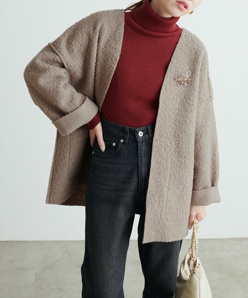 【2024AW natural couture】シーズンムード高まるウールライクアウター■Design くるんとカールした表情豊かなフェイクリングウールのトッパーコート。一気にシーズンムードを盛り上げてくれる秋冬らしいもこもこデザインと、大きなパッチポケットが印象的なシンプルなデザインの2つをリバーシブルでお楽しみ頂けます。ゆとりを持たせたオーバーサイズで大人の抜け感コーデに仕上げてくれる1着。ヒップが隠れる丈感なので、体形カバーもばっちり。軽やかな素材と釦レスデザインで、さらっと気軽に羽織れる秋のスタメンアウターです。■Stylingボリュームのあるシルエットなので、スキニーパンツやナロースカートなどを合わせてメリハリをつけたスタイリングがおすすめ。ルーズに羽織り、少し背中側に落として着ると抜け感が出てこなれたスタイルに。ノーカラーデザインなので、タートルネックニットやマフラーとの相性も抜群です。■Fabric柔らかな肌触りのフェイクウール生地を使用。ポリエステル100%なので軽やかな着心地です。=========================お手入れ方法:手洗い透け感:なしポケット:あり裏地:なし伸縮性:ややあり光沢感:なし生地感:柔らかな肌触りの生地感========================= ※着用、お取り扱いの際は、商品に付いている品質表示とアテンションタグを必ずご確認ください。【お気に入り登録でお得な情報がいっぱい】・「商品のお気に入り登録」で再入荷通知や、ラスト1点の通知、セール通知をいち早く受け取ることができます。・「ブランドのお気に入り登録」で新商品や再入荷など、お得な情報を受け取ることができます!※店舗の入荷時期は商品によって異なります。店頭の在庫状況につきましては各店舗にてお問い合わせください。※撮影時の光の関係で、画面上の画像と実際のお色とでは若干の色差が生じる可能性がございます。また、ご覧いただいているモニター画面や、お使いのブラウザによっても、お色の違いがございますことをあらかじめご了承くださいませ。202409062024AW_natu24AW