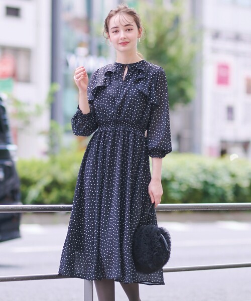 ▼▼気になるアイテムはハートマークをクリック♪▼▼是非お気に入り登録してチェックしてください♪胸元フリルデザインが華やかなドットプリントデザインワンピース~POINT~トレンドのドット柄が可愛く一枚でスタイリングが決まります胸元のリボンで開き具合の調節も可能です◎とても軽やかで動くたびに揺れるデザインです【素材・機能】ストライプの織柄が入ったシフォン素材に、細かいドットをプリントした素材を使用しています※ハンドウォッシャブル機能付き※袖以外裏地あり※裏地のない部分はやや透け感があります。※照明の関係により、実際よりも色味が違って見える場合があります。また、パソコン・スマートフォンなどの環境により、若干製品と画像のカラーが異なる場合もございます。【スタッフコメント】・saori(153 )胸元のフリルデザインが可愛く、プリントにもこだわったワンピースで上品な印象になります◎ジャケットやカーディガンと合わせて着てもオススメです!【24AW NEW ARRIVAL】【24AW NEW COLLECTION】モデル情報:身長165cm B79 W58 H86 着用サイズ:38(M)店舗へのお問い合わせ商品番号:508-59018●製品寸法:36(S):着丈113cm B101cm 袖丈57cm 肩幅33cm W57~101cm38(M):着丈115cm B104cm 袖丈58cm 肩幅34cm W60~104cm40(L):着丈118cm B107cm 袖丈59cm 肩幅35cm W63~107cm42(LL):着丈119cm B110cm 袖丈60cm 肩幅36cm W66~110cm備考:
