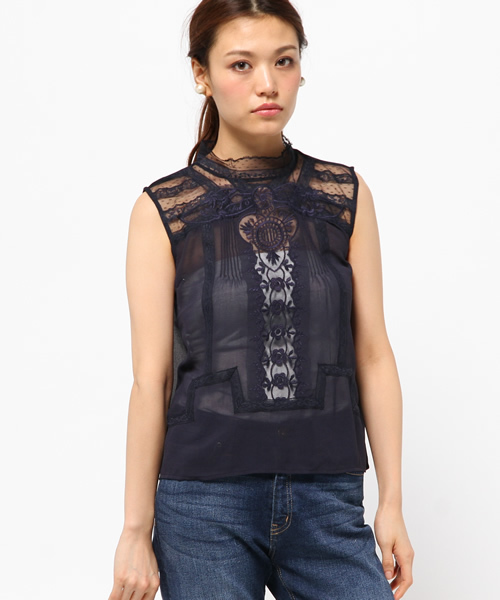 トレンドの70年代を彷彿させるようなアンティーク調のレースがポイントのノースリーブブラウスです。1枚で着て頂くのはもちろんのこと、トレンドのロングカーディガンを羽織って頂いたり、スウェットなどのインナーに着て首元のレースをチラみせして頂いたりと、様々なスタイリングをお楽しみ頂けます。 店舗へのお問い合わせは下記品番でお問い合わせください。 品番:CMG-6509-A