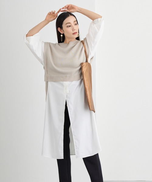 【ドッキングワンピース】【Fabric】ハイゲージニットと布帛デシン素材のドッキング【Design】さっと1枚着るだけでレイヤードコーデが完成するドッキングワンピース。前スリットが全体のバランスをすっきりとさせてくれます。【Styling】前がスリット上になっているため、ボトムとのレイヤードがマスト。柄物ボトムとの合わせはチラ見えしておしゃれに着こなせます。丈の長いアウターはもちろん、ジャケットやブルゾン合わせも野暮ったくならずすっきりした印象になります。-------------------------■透け感:布帛白部分若干あり■裏地:なし■伸縮性:ニット部分あり■光沢感:なし■生地の厚さ:普通-------------------------☆★お買い物をお楽しみいただく為に★☆★商品のお気に入り登録完売カラーの再入荷通知や、ラスト1点の通知、セールの通知も受け取ることができます。★ブランドのお気に入り登録新商品や再入荷等、ブランドのお得な情報をいち早く受け取ることができます。