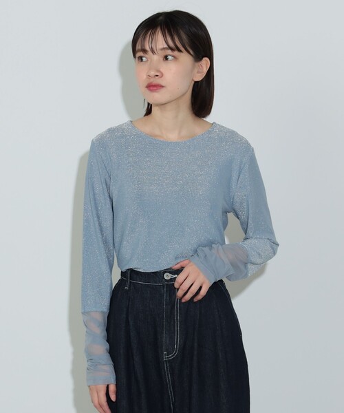 洗練と個性の融合■デザインラメカットソー素材のボディ部分に、肘下からチュール素材を施したトップス。レイヤードがしやすいBLACKと差し色として映えるSAXの2カラー展開です。■コーディネートコーディネートのメインアイテムとしてはもちろん、スウェットやカーディガンを重ねれば袖口からチュールが覗き、コーデを華やかに仕上げてくれます。■サイズボディ部分は程よくゆとりを持たせたシルエット。■素材袖口は透け感のあるチュール素材。ボディは滑らかなカットソー素材を採用しているのでストレスなく着用いただけます。■ケア方法洗濯可(詳細は商品についている品質表示ラベルをご覧ください)生地の厚さ:やや薄手透け感:なし※チュール部分は透け感あり伸縮性:ややあり光沢感:ややあり裏地:なし【スタッフレビュー】スタッフ:おがわ まりな身長:158cm / 普段サイズ:S / 着用サイズ:ONE SIZE骨格診断:ウェーブ / パーソナルカラー:イエベサイズ感: フィット感のあるシルエットですが袖は長めなのでクシュッと着るのがおすすめ。素材感: 薄手のプルオーバーで伸縮性のある素材。ポイント: さりげないラメデザインとお袖のチュールデザインが一枚でもシンプルすぎず着やすい!※光の当たり具合やパソコンなどの閲覧環境によって実際の色味と異なって見える場合がございます。予めご了承ください。※商品の色味は商品単体で撮影した画像をご参照ください。