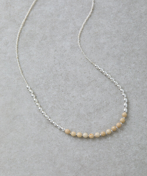 ■アイテム細かいパーツまでこだわった、単体着けでも華やかなデザインネックレス。温かみのある風合いが魅力の天然素材にシルバーパーツを加えることで上品な印象になっています。■素材・洗濯表示合金ヘマタイトリバーストーン※着用時は、必ず取扱い表示・タグをご確認の上、お取り扱い下さい。《お取り扱い上のご注意》・タンブル乾燥不可《予約商品について》・サンプルの為、素材情報、洗濯表示については企画段階の情報を記載しております。公的機関での試験データ結果を受け、量産にあたり混率や洗濯方法の変更が発生する場合がございますので、ご了承くださいませ。・サンプルでの撮影、計測をしております。商品の仕様が一部変更になる場合がございます。・撮影サンプル品はブランドタグがついておりません。製品にはタグがつきますので、製品の表に縫い糸が見える場合がございます。・工場の生産の都合上、納期が変更になる場合がございます。検品や輸送の関係で、発送日が前後しますのでご了承ください。また、入荷状況により、お客様への発送が店頭販売より遅れる場合もございます。・店頭に陳列していた商品も含まれる場合がございます。《商品画像について》ご覧頂いている商品の写真につきましては、できるだけ実物の色に近くなるように努めておりますが お使いの環境(モニター、ブラウザ等)の違いにより、色の見え方が実物と若干異なる場合がございます。 予めご了承ください。《ハートをタップして商品のお気に入り登録》登録カラーの商品の「残りわずか」「再入荷」「値下げ」通知を受け取ることができます。各ショップアプリにてブランドフォロー 新商品などの入荷情報、最新のニュースやお得な情報を受け取ることができます。
