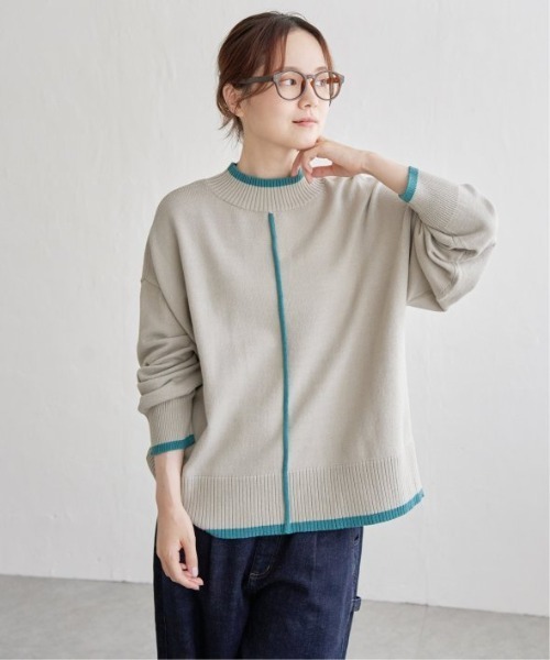前後2WAYで着用できる、配色ラインの入ったニットプルオーバー。ビビットな配色使いで、着こなしに新鮮なムードを呼び込みます。【素材】綿混ニット、毛羽感が少なくスッキリ見え!【デザイン】前後2WAYで、配色使いのデザイン。【ポイント】軽く着ていただける綿混の糸にこだわったすっきりニット。今年はベースカラーをクリーンな梅春カラーにし、配色をより効かせています。濃いめの配色部分は縦ライン、首、裾に入り引き締めて見せてくれます。[洗濯方法]洗濯の際はネットを使用してください