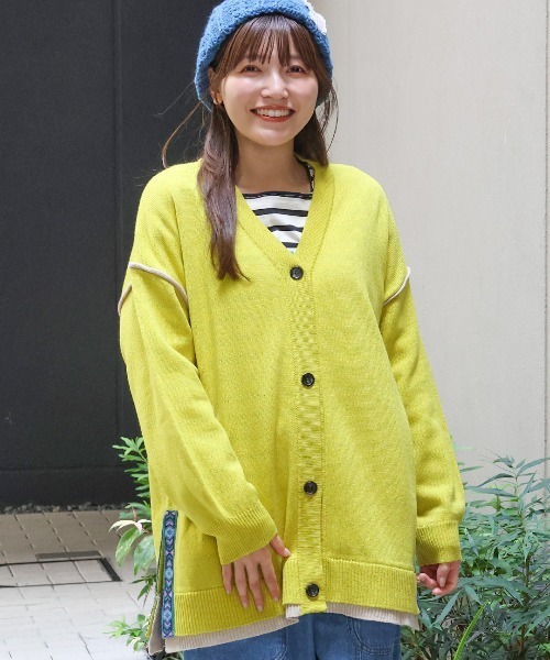 ゆるっとこなれ感!着回し力抜群のロングカーディガン ■デザイン ゆるっとしたシルエットのVネックカーディガン。 サイドのスリットにはチチカカらしい幾何学柄のラインをプラスしました。 肩の切り替えや裾の配色もアクセント♪ ワイドなシルエットですが、落ち感のあるさらっとしたニット素材ですっきり着こなせます。 ■サイズ感 レディースフリーサイズ ゆったりとしたドロップショルダーデザイン。 お尻が隠れる長めの丈感です。 ■素材感 さらりとした肌触りの軽やかなニット素材。 お家の洗濯機でお手入れができるので、毎日着られちゃいます。 ■スタイリング シンプルなデザインなので、柄アイテムと好相性。 総柄のワンピースやスカートにさっと羽織ってレディーな着こなしがおすすめ。 レッドとイエローは鮮やかな色合いなので、差し色として取り入れるだけでいつものコーデがぐっと華やかになりますよ◎ ■カラー ブラック/グレー/レッド/イエロー ■お手入れ 洗濯機可 --------------------------------- 透け感:やや透ける 伸縮性:あり 裏地 :なし 光沢 :なし 生地の厚さ:普通 ポケット:なし --------------------------------- 【お取り扱い上のご注意】 ・この製品はご家庭の洗濯機で洗えます。 ・裏返しにして洗濯ネットを使用して下さい。 ・中性洗剤を使用して30度以下で洗って下さい。 ・お洗濯後は形を整えて、日陰で平干しをして下さい。 ・多少縮んだりしますが中温のアイロンで整えて下さい。 ・ピリング(毛玉)が発生することがありますが、素材の特性ですのでご了承下さい。 ※詳しくは付属のタグをご確認くださいませ。 【TITICACAのお買いものをお楽しみいただくために!】 ▼商品のお気に入り登録 完売カラーの再入荷通知や、ラスト1点の通知、セールの通知も受け取ることができます。 ▼ブランドのお気に入り登録 新商品や再入荷など、いち早くブランドのお得な情報を受けることができます!