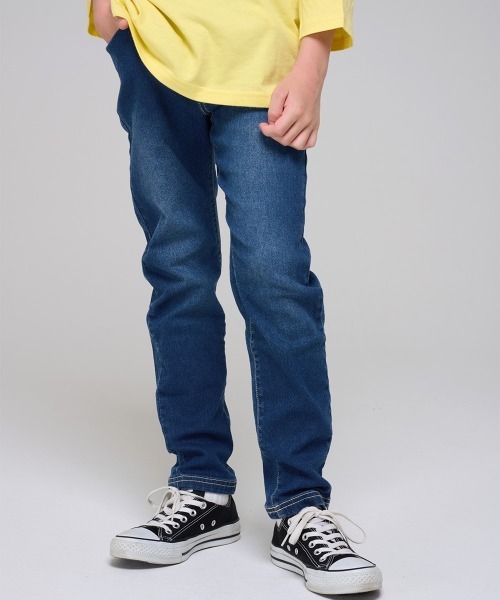 《KRIFF MAYER 大人気マイニチシリーズから「デニムパンツ」が登場!》■ポイントストレッチ性の高さで、ストレスフリーな穿き心地と、子供たちのアクティブな動きにも対応できる、100点満点の1本。本格デニムのような、こなれた加工感が効いていておしゃれ感も◎オールシーズン穿ける程よい厚みで、どんなスタイルにも合わせやすいから通学にも最適で毎日穿きたくなります!ウエストはゴムなので、パッと穿いてすぐお出かけ出来ちゃいます♪■素材・伸縮性:あり・透け感:なし■機能・洗濯機洗い可(ネット使用)※インディゴ染めの染料は色落ちしやすい性質を持ちます。着用・洗濯を繰り返すことにより、少しずつ変化する表情や風合いを楽しむことができます。その為摩擦や濡れたままでの放置により移染する場合がございます。小学校低学年〜高学年の、キッズ〜ジュニアサイズに加え、メンズSサイズ以下だけどキッズの160cmでもない。。。そんな微妙な時期のお子様に対応する170cmまで!