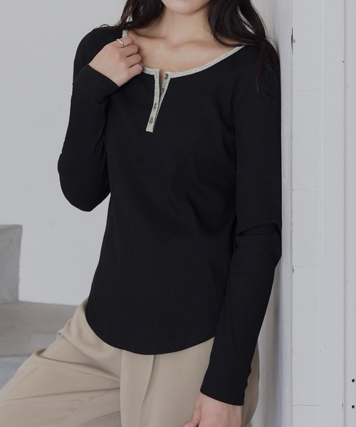 【CHAN ME/AW】配色パイピングデザインが目を惹くヘンリーネックプルオーバー[DESIGN]コンパクトなサイズ感&程よい抜け感が出せるヘンリーネックが魅力のデザインカットソー。デコルテラインが綺麗に見えるラウンドネックで、ナチュラルな肌見せに。ゆるっとルーズに着こなせる長めの袖と、インでもアウトでも決まるラウンドヘムで様々なボトムスと好相性◎ディテールにこだわりつつも、シンプルなデザインでトレンドレスに着回し可能なマストバイアイテムです♪[COLOR]ホワイトブラックグレーベージュ********************伸縮性:あり光沢感:なし生地の厚さ:普通********************洗濯:洗濯機可(ネット使用)※サイズはcm単位にて表示しています。商品によっては、数cmの誤差が出る場合がございます。※商品の使用・サイズ・販売価格は、予告なく変更する場合があります。ご了承ください。※この商品は、汗や雨などで濡れた状態や湿った状態での着用及び摩擦により、色移り・色落ちの可能性があります。ご注意ください。※御覧になっているPC/WEB環境や撮影環境により、多少色味が異なって見える可能性がございます。予めご了承ください。---------------------INFORMATION--------------------▼商品のお気に入り登録商品・カラー・サイズまで、お気に入り登録を行っていただくと、対象アイテムのセール通知・ラスト1点のお知らせ・完売カラーの再入荷通知を受け取ることができます!▼ブランドのお気に入り登録商品の再入荷・新商品の入荷・タイムセール・クーポン発行のお知らせなど、お得な情報を受け取ることができます!※アプリでも通知を受け取ることができます。アプリの通知設定をお願いいたします!-----------------------------------------------------------※キャンペーン等により、価格が変わる場合がございます。※セールは予告なく終了することもあります。