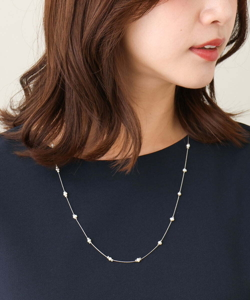 小さな淡水パールが並んだネックレス。繊細で華奢なデザインはコーディネートの邪魔をせず、上品なアクセントに。 ※自然光・照明の関係、パソコン・スマートフォンなどの環境により、実際と色味が違って見える場合がございます。予めご了承ください。商品の色味は、詳細画像をご参照ください。 ※サンプルでの撮影となるため、実際にお届けする商品と仕様やサイズが異なる場合がございます。 ※アクセサリーパーツ・部品などの金属部分に鉛が含まれている場合があります。 小さなお子様が口に入れたり誤って飲み込んだりしないように、使用や保管の際は厳重にご注意ください。 ▼カラー番号表記 ゴールド(95)、シルバー(96)