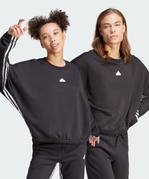 【アディダス公式ショップ】 リサイクル素材と再生可能素材のブレンド生地を用いたスウェットシャツ。 リハーサルでも、街を歩くときも、このスウェットシャツが頼りになる。ソフトなフレンチテリーファブリックを使用しているから、ダンスで激しく動き回るときもずっと快適。ダンスの楽しさを表現するとき、脇の下にあしらったスリーストライプスのディテールがちらりと覗く。スタジオに向かうときやカフェに行くときはもちろん、踊るとき、静かに過ごすとき、ただぶらぶら歩くときなど、様々なシーンに重宝するクルーネックスウェット。誰もが楽しめるダンスと同じように、どんな人にも着てほしいマルチユースアイテム。 リサイクル素材を選択することで、既に製造された製品の素材を再利用することができ、それがゴミの削減につながる。また、再生可能素材を選択することでも、限りある資源への依存を減らすことができる。この製品は、リサイクル素材や再生可能素材をブレンドしたものを70%以上使用している。 商品の特徴 ●ルーズフィット ●リブ仕上げのクルーネック ●綿77% / ポリエステル23%(フレンチテリー[裏毛]) ●リサイクル・再生可能素材を70%以上使用 ●ドロップショルダー ●伸縮性のある袖口と裾 ●用途:アスレジャー、スポーツミックス、通勤通学、部活、スポーツウェア ●トレーナー、クルーネックスウェット ●コーディネートに取り入れやすい黒を基調としたデザイン ●商品番号:IP2391 (ブラック)