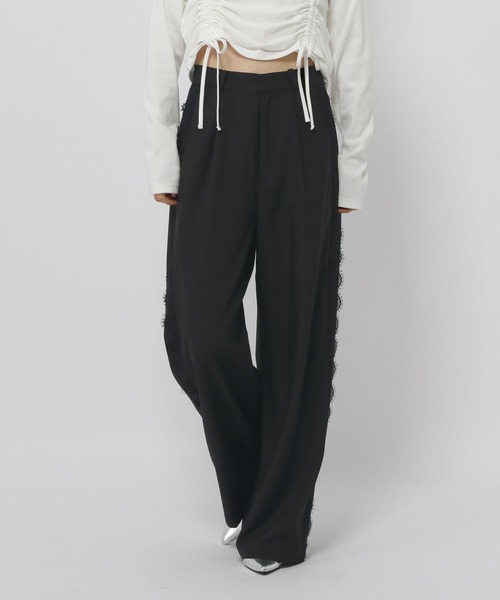 ーーーゆったりとした裾にたまるシルエットが可愛い、レースラインパンツーーー【POINT】・ルーズなシルエットなので、スラックスの素材感でもカジュアルに着こなすことができます。・サイドのレースはあえてラインの位置を前側にすることで、前から見た時にレースが見えて映えるデザインになっています。・フロントにはタックが入っており、ヒップラインなど体のラインを拾わず、綺麗なシルエットでご着用いただけるデザインになっています。【STYLING】・セットのJKと合わせてセットアップに・あえてスウェットなどのボーイッシュなアイテムと合わせてMIXコーデに・クロップドなどの短丈トップスと合わせてミニマルコーデに<3.3 Field Trip/3.3フィールドトリップ>ブランド名にある3.3はその名の通り「3.3平方メートル」を意味し、3.3 Field Tripと一緒なら、いつでもどこでも快適にリラックスできるという意味が込められています。「We love Brooklyn」をモットーに、実用的でありながらスタイリッシュなルックとナチュラルさを追求したALANDのプライベートブランドです。・・・・・・・・・・・・・・・・・・・・・・透け感:透けない(グレーで計測しています)伸縮性:あり生地の厚さ:普通裏地:なし・・・・・・・・・・・・・・・・・・・・・・▼取扱いSHOP:ALANDファッション、雑貨、コスメなどさまざまなブランドを取り扱う韓国発のストリートセレクトショップ。2020年秋、待望の日本上陸を遂げたALANDは、韓国の新進デザイナーとサブカルチャーを発掘し、その価値を最も魅力的な方法でマーケットに発信する唯一のライフスタイル型ストリートセレクトショップです。【お気に入り登録がオススメ】・商品のお気に入り登録「在庫残りわずか」「完売カラーの再入荷」「セール」の通知を一足早く受け取ることができます。気になった商品はまずお気に入り登録へ!・ブランドのお気に入り登録お気に入り登録したブランドの新作や再入荷等、ブランドのお得な情報を定期的に受け取る事が出来ます。※屋外の光や照明の当たり具合で、実際の商品の色味とカラー別画像の色味に違いが発生する場合がございます。 商品の色味はスタジオ撮影の詳細画像にてご確認ください。※サンプルにて撮影をしておりますので、実際の商品とは仕様や加工・サイズ等が若干異なる場合がございます。