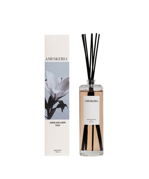 REMINISCENT OF DREAMS レミニッシェント オブ ドリームズ儚いけれど記憶に残る、美しい香り。 夢の中で出会った良い香りは幸せの前兆と言われているそう。 心地よい夢の風景に寄り添う、花と草木の穏やかな香りを表現しました。 夢と香りがつなぐ偶然の出会いは心地よい時間と空間を与えてくれます。 ディフューザー スリムな形状の瓶がまるでスキンケア用品のような見た目のディフューザー。 縦長なので省スペースに置くことができ、お部屋でも場所を取らず香りをお楽しいただけます。 FRAGRANCE その他1:REVERIE (レヴァリィ) ホワイトムスクやローズにグリーンアップルとピーチが明るいイメージを加えた、フルーティーなフローラルノート。 その他2:DEVANEIO (デヴァネイオ) ジャスミンやカーネーションにサンダルウッドやシダーウッドが落ち着いた印象を与える、深みのあるフローラルノート。 その他3:AMESKERIA (アメスケリア) ジャスミンやすずらん、ほのかなローズが幸せな気持ちを運んでくれる、芳醇なフローラルノート。 芳香期間:約8週間