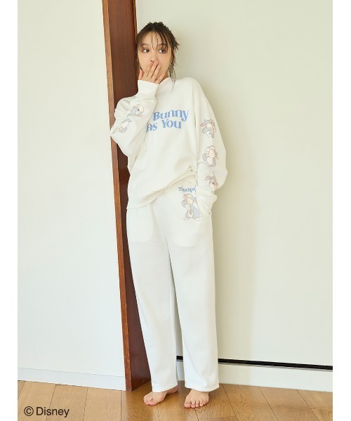 「とんすけ」と「ミス・バニー」のキュートなルームウェアコレクション第2弾! ディズニー映画の『バンビ』に登場するキュートな仲間たち、「ミス・バニー」と「とんすけ」のコレクションに待望の第2弾が登場です。 今回もそれぞれのキャラクターの世界観に合わせて作り上げた、個性豊かなニットアイテムやスペシャルなプリント柄アイテムがラインナップ。 SNIDEL HOMEらしいフェミニンなニュアンスカラーが、「ミス・バニー」や「とんすけ」と過ごすおうち時間を優しく彩ります。 ー「Thumper&Miss Bunny from Bambi」ー 『バンビ』は愛らしい動物たちが森の生活を通じて、自然界の美しさや厳しさを学び伸びやかに成長していく姿を描いた名作アニメ。好奇心旺盛なウサギ「とんすけ」と、その魅力的なガールフレンド「ミス・バニー」は、1942年に公開されたディズニー映画『バンビ』に登場する人気キャラクターです。 【Design/Styling】 肌あたりソフトな裏起毛のスウェットを使用した、カジュアルなロングパンツです。 腰元にとんすけとミス・バニーの顔をそれぞれプリントしたキャッチーなデザイン。 ストレートシルエットで仕上げているので、よりリラックスした着用感をお楽しみいただけます。 色はとんすけモチーフのホワイトと、ミス・バニーモチーフのピンクをご用意しました。 お揃いのスウェットプルオーバー(SHCT244085)とセットアップでお楽しみいただけます。 【透け感】なし 【裏地】なし 【伸縮性】ややあり 【生地の厚さ】やや厚手 ※照明の関係により、実際よりも色味が違って見える場合があります。 またパソコン・スマートフォンなどの環境により、若干製品と画像のカラーが異なる場合もございます。予めご了承ください。 商品の色味は、商品単品画像をご参照下さい。 ※商品画像はサンプルのため、色味やサイズ等の仕様に変更がある場合がございますので、予めご了承ください。